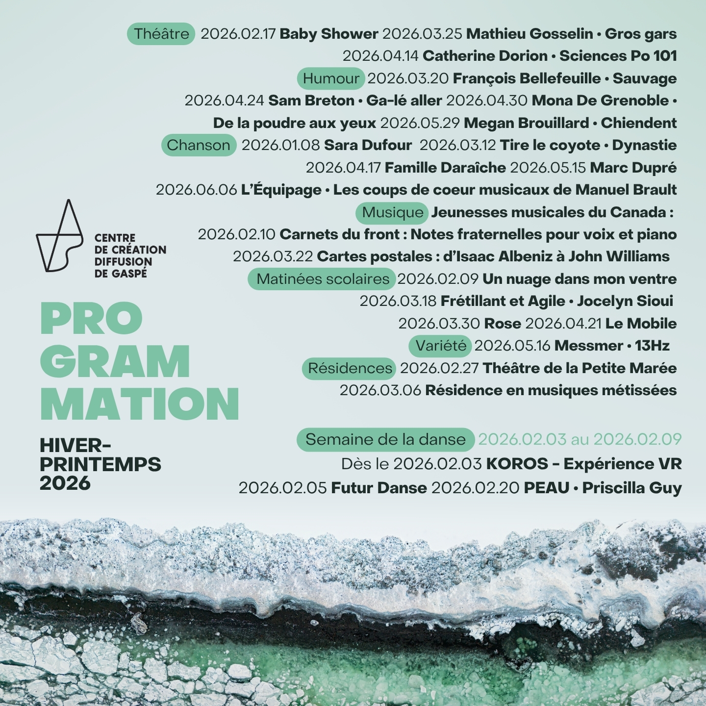 Le Centre de Création Diffusion de Gaspé se réjouit de dévoiler une nouvelle programmation qui saura plaire à tous les amateurs de spectacles!